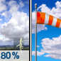 Temperature: 62°F Wind Speed: 16 to 24 mph Wind Direction: SW Forecast: A chance of rain before 7am, then rain and a slight chance of thunderstorms between 7am and noon. Mostly sunny. High near 62, with temperatures falling to around 42 in the afternoon. Southwest wind 16 to 24 mph, with gusts as high as 40 mph. Chance of precipitation is 80%. New rainfall amounts between a quarter and half of an inch possible. |
