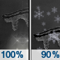 Temperature: 26°F Wind Speed: 6 to 10 mph Wind Direction: NW Forecast: Freezing rain before 7pm, then rain between 7pm and 8pm, then freezing rain between 8pm and 2am, then snow between 2am and 5am, then snow showers likely. Cloudy, with a low around 26. Northwest wind 6 to 10 mph. Chance of precipitation is 100%. New snow accumulation of less than half an inch possible. Little or no ice accumulation expected. |