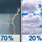 Temperature: 65°F Wind Speed: 15 mph Wind Direction: W Forecast: Showers and thunderstorms likely before 7am, then a chance of showers and thunderstorms between 7am and 8am, then showers and thunderstorms between 8am and noon. Mostly cloudy. High near 65, with temperatures falling to around 49 in the afternoon. West wind around 15 mph, with gusts as high as 25 mph. Chance of precipitation is 70%. New rainfall amounts between a quarter and half of an inch possible. |