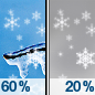 Temperature: 4°F Wind Speed: 3 mph Wind Direction: S Forecast: A chance of snow after 7pm. Cloudy. Low around 4, with temperatures rising to around 6 overnight. South wind around 3 mph. Chance of precipitation is 30%. New snow accumulation of less than half an inch possible. |