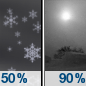 Temperature: 7°F Wind Speed: 6 to 16 mph Wind Direction: S Forecast: A slight chance of snow after midnight. Mostly cloudy. Low around 7, with temperatures rising to around 20 overnight. South wind 6 to 16 mph. Chance of precipitation is 20%. |