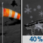 Temperature: 33°F Wind Speed: 21 to 24 mph Wind Direction: NW Forecast: Snow likely and sleet likely before noon. Mostly cloudy. High near 33, with temperatures falling to around 31 in the afternoon. Northwest wind 21 to 24 mph. Chance of precipitation is 60%. New snow accumulation of less than half an inch possible. Little or no ice accumulation expected. |