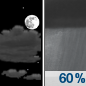 Temperature: 45°F Wind Speed: 8 to 13 mph Wind Direction: S Forecast: Rain showers likely after 2am. Partly cloudy, with a low around 45. South wind 8 to 13 mph, with gusts as high as 23 mph. Chance of precipitation is 60%. |