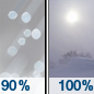 Temperature: 34°F Wind Speed: 5 to 15 mph Wind Direction: N Forecast: Areas of fog before 7am, then patchy fog and a slight chance of rain between 7am and 8am, then a chance of rain and patchy fog and a slight chance of sleet between 8am and 9am, then areas of fog and rain and snow between 9am and 3pm, then snow and areas of freezing fog between 3pm and 4pm, then snow and areas of blowing snow. Cloudy. High near 34, with temperatures falling to around 20 in the afternoon. North wind 5 to 15 mph, with gusts as high as 30 mph. Chance of precipitation is 100%. New snow accumulation of 4 to 8 inches possible. |