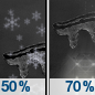 Temperature: 33°F Wind Speed: 5 mph Wind Direction: N Forecast: A chance of rain and snow before 7pm, then rain likely and a chance of freezing rain. Cloudy, with a low around 33. Chance of precipitation is 70%. |