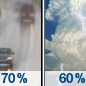Temperature: 37°F Wind Speed: 15 to 20 mph Wind Direction: W Forecast: Rain likely and a chance of thunderstorms. Mostly cloudy, with a low around 37. West wind 15 to 20 mph, with gusts as high as 25 mph. Chance of precipitation is 70%. |