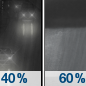 Temperature: 32°F Wind Speed: 5 mph Wind Direction: S Forecast: A chance of rain showers after 7pm. Cloudy, with a low around 32. South wind around 5 mph. Chance of precipitation is 40%. |