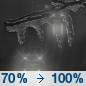 Temperature: 29°F Wind Speed: 5 mph Wind Direction: N Forecast: A chance of rain before midnight, then a chance of snow. Mostly cloudy, with a low around 29. North wind around 5 mph. Chance of precipitation is 30%. |