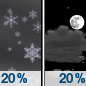 Temperature: 25°F Wind Speed: 8 mph Wind Direction: SW Forecast: A slight chance of snow between 10pm and midnight. Mostly cloudy, with a low around 25. Southwest wind around 8 mph. |