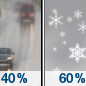 Temperature: 16°F Wind Speed: 14 mph Wind Direction: NNW Forecast: Rain and snow likely before 1am. Mostly cloudy, with a low around 16. |