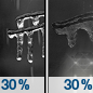 Temperature: 28°F Wind Speed: 5 to 10 mph Wind Direction: SW Forecast: A chance of freezing rain between 7pm and 1am, then a slight chance of rain. Cloudy, with a low around 28. Chance of precipitation is 30%. |