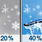 Temperature: 25°F Wind Speed: 9 to 13 mph Wind Direction: SW Forecast: A slight chance of snow after 5am. Mostly cloudy. Low around 25, with temperatures rising to around 27 overnight. Southwest wind 9 to 13 mph. Chance of precipitation is 20%. |