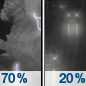 Temperature: 37°F Wind Speed: 5 mph Wind Direction: W Forecast: Showers and thunderstorms likely before midnight, then a slight chance of rain. Mostly cloudy, with a low around 37. Chance of precipitation is 70%. |