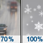 Temperature: 30°F Wind Speed: 5 mph Wind Direction: S Forecast: Rain and snow likely before 1am, then a chance of rain and snow. Mostly cloudy, with a low around 30. Chance of precipitation is 70%. |