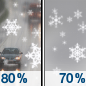 Temperature: 48°F Wind Speed: 8 to 17 mph Wind Direction: NW Forecast: Rain before 10am, then rain and a slight chance of sleet between 10am and 11am, then sleet likely and rain likely between 11am and noon, then rain and snow likely between noon and 1pm. Mostly cloudy. High near 48, with temperatures falling to around 31 in the afternoon. Northwest wind 8 to 17 mph, with gusts as high as 26 mph. Chance of precipitation is 80%. New rainfall amounts between a tenth and quarter of an inch possible. |