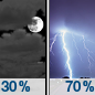 Temperature: 51°F Wind Speed: 0 to 15 mph Wind Direction: W Forecast: A chance of showers and thunderstorms after 1am. Mostly cloudy. Low around 51, with temperatures rising to around 57 overnight. West wind 0 to 15 mph. Chance of precipitation is 70%. New rainfall amounts between a tenth and quarter of an inch possible. |