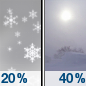 Temperature: 34°F Wind Speed: 15 mph Wind Direction: SW Forecast: A chance of snow. Mostly cloudy, with a high near 34. |