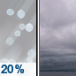 Temperature: 20°F Wind Speed: 6 to 9 mph Wind Direction: ENE Forecast: A slight chance of snow after noon. Mostly cloudy, with a high near 20. East northeast wind 6 to 9 mph. Chance of precipitation is 20%. |