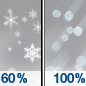 Temperature: 34°F Wind Speed: 5 to 15 mph Wind Direction: N Forecast: A chance of snow showers. Mostly cloudy, with a high near 34. |
