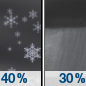 Temperature: 29°F Wind Speed: 8 mph Wind Direction: SSW Forecast: A chance of snow showers before 7pm, then a chance of rain showers between 7pm and 1am. Cloudy, with a low around 29. Chance of precipitation is 40%. New snow accumulation of less than half an inch possible. |