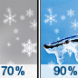 Temperature: 34°F Wind Speed: 10 to 15 mph Wind Direction: E Forecast: Snow likely before 1pm, then snow and a slight chance of freezing rain. Mostly cloudy, with a high near 34. East wind 10 to 15 mph, with gusts as high as 25 mph. New snow accumulation of 3 to 7 inches possible. Little or no ice accumulation expected. |