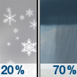 Temperature: 51°F Wind Speed: 6 mph Wind Direction: SW Forecast: A slight chance of snow showers between 7am and 8am, then rain showers likely. Mostly cloudy, with a high near 51. Southwest wind around 6 mph. Chance of precipitation is 70%. New rainfall amounts less than a tenth of an inch possible. |