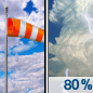 Temperature: 79°F Wind Speed: 14 to 21 mph Wind Direction: S Forecast: A slight chance of showers and thunderstorms between 1pm and 4pm, then showers and thunderstorms. Some of the storms could be severe and produce heavy rain. Partly sunny, with a high near 79. South wind 14 to 21 mph, with gusts as high as 30 mph. Chance of precipitation is 80%. |