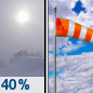 Temperature: 40°F Wind Speed: 14 mph Wind Direction: NW Forecast: Mostly sunny, with a high near 40. Northwest wind around 14 mph, with gusts as high as 31 mph. |