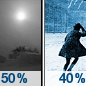 Temperature: 16°F Wind Speed: 5 to 12 mph Wind Direction: W Forecast: A slight chance of snow showers between 7am and 1pm. Mostly cloudy, with a high near 16. Chance of precipitation is 30%. New snow accumulation of less than half an inch possible. |