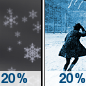 Temperature: 30°F Wind Speed: 2 to 6 mph Wind Direction: S Forecast: A chance of snow showers after 1pm. Mostly cloudy, with a high near 30. South wind 2 to 6 mph. Chance of precipitation is 30%. New snow accumulation of less than half an inch possible. |