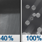Temperature: 30°F Wind Speed: 15 to 25 mph Wind Direction: SW Forecast: Rain showers between 10pm and 4am, then a slight chance of sleet and rain and snow showers. Mostly cloudy. Low around 30, with temperatures rising to around 35 overnight. Southwest wind 15 to 25 mph, with gusts as high as 45 mph. Chance of precipitation is 100%. New rainfall amounts between three quarters and one inch possible. |