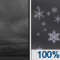 Temperature: 15°F Wind Speed: 7 mph Wind Direction: W Forecast: Snow showers likely. Mostly cloudy, with a low around 15. |