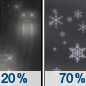 Temperature: 20°F Wind Speed: 22 mph Wind Direction: SW Forecast: A slight chance of rain before midnight, then rain and snow likely. Mostly cloudy, with a low around 20. Southwest wind around 22 mph, with gusts as high as 30 mph. Chance of precipitation is 70%. |