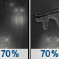 Temperature: 31°F Wind Speed: 13 to 17 mph Wind Direction: NNE Forecast: Rain likely before 1am, then freezing rain likely and rain likely. Cloudy, with a low around 31. Chance of precipitation is 70%. |