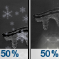 Temperature: 35°F Wind Speed: 5 to 8 mph Wind Direction: S Forecast: A chance of snow after 7am. Mostly cloudy, with a high near 35. South wind 5 to 8 mph. Chance of precipitation is 50%. New snow accumulation of less than half an inch possible. |