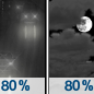 Temperature: 48°F Wind Speed: 1 to 5 mph Wind Direction: SSW Forecast: A chance of rain before 10pm, then rain showers likely between 10pm and 4am, then a chance of rain showers and patchy fog. Mostly cloudy, with a low around 48. South southwest wind 1 to 5 mph. Chance of precipitation is 60%. New rainfall amounts less than a tenth of an inch possible. |