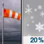 Temperature: 12°F Wind Speed: 15 to 20 mph Wind Direction: NNW Forecast: A slight chance of snow before midnight. Partly cloudy, with a low around 12. Wind chill values as low as -2. North northwest wind 15 to 20 mph, with gusts as high as 35 mph. Chance of precipitation is 20%. |