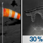 Temperature: 39°F Wind Speed: 13 to 20 mph Wind Direction: SW Forecast: Rain before 3pm, then rain and snow likely. Cloudy, with a high near 39. Southwest wind 13 to 20 mph, with gusts as high as 30 mph. Chance of precipitation is 90%. |