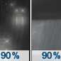 Temperature: 48°F Wind Speed: 5 to 10 mph Wind Direction: E Forecast: Rain before 9pm, then rain showers. Cloudy, with a low around 48. East wind 5 to 10 mph, with gusts as high as 25 mph. Chance of precipitation is 90%. |