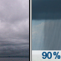 Temperature: 58°F Wind Speed: 6 to 16 mph Wind Direction: S Forecast: Rain showers after noon. Cloudy, with a high near 58. South wind 6 to 16 mph, with gusts as high as 28 mph. Chance of precipitation is 90%. New rainfall amounts less than a tenth of an inch possible. |