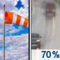 Temperature: 38°F Wind Speed: 5 to 25 mph Wind Direction: E Forecast: A slight chance of rain showers between 1pm and 4pm, then a chance of rain. Mostly cloudy, with a high near 38. East wind 5 to 25 mph. Chance of precipitation is 70%. |