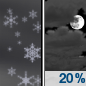 Temperature: 32°F Wind Speed: 0 to 5 mph Wind Direction: SE Forecast: A slight chance of rain and snow showers before 10pm. Mostly cloudy, with a low around 32. |