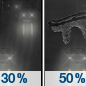 Temperature: 41°F Wind Speed: 0 to 5 mph Wind Direction: NE Forecast: A chance of rain. Cloudy, with a low around 41. Northeast wind 0 to 5 mph. Chance of precipitation is 40%. |