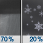 Temperature: 47°F Wind Speed: 10 to 15 mph Wind Direction: S Forecast: A chance of rain showers. Mostly cloudy, with a low around 47. Chance of precipitation is 30%. |