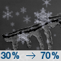 Temperature: 25°F Wind Speed: 6 to 12 mph Wind Direction: S Forecast: A chance of snow after noon. Mostly cloudy, with a high near 25. Chance of precipitation is 30%. |