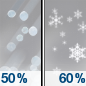 Temperature: 41°F Wind Speed: 5 mph Wind Direction: SW Forecast: A chance of snow and a chance of sleet before 9am, then a chance of rain and snow between 9am and noon, then rain and snow likely. Mostly cloudy, with a high near 41. Chance of precipitation is 60%. |