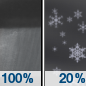 Temperature: 33°F Wind Speed: 7 to 12 mph Wind Direction: N Forecast: Rain showers before 11pm, then a slight chance of snow showers between 2am and 5am, then a slight chance of rain and snow showers. Mostly cloudy, with a low around 33. North wind 7 to 12 mph. Chance of precipitation is 100%. New rainfall amounts between a tenth and quarter of an inch possible. |