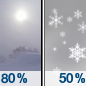Temperature: 33°F Wind Speed: 5 to 9 mph Wind Direction: S Forecast: A slight chance of snow showers after 7am. Mostly cloudy, with a high near 33. |