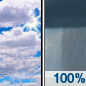 Temperature: 61°F Wind Speed: 5 to 15 mph Wind Direction: NE Forecast: Rain showers after noon. Mostly cloudy. High near 61, with temperatures falling to around 52 in the afternoon. Northeast wind 5 to 15 mph. Chance of precipitation is 100%. New rainfall amounts between a tenth and quarter of an inch possible. |