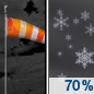 Temperature: 31°F Wind Speed: 13 to 24 mph Wind Direction: SW Forecast: A chance of rain and snow showers between midnight and 2am, then a chance of rain and snow showers between 2am and 3am, then rain and snow showers likely. Mostly cloudy. Low around 31, with temperatures rising to around 37 overnight. Southwest wind 13 to 24 mph, with gusts as high as 37 mph. Chance of precipitation is 70%. New rainfall amounts less than a tenth of an inch possible. |